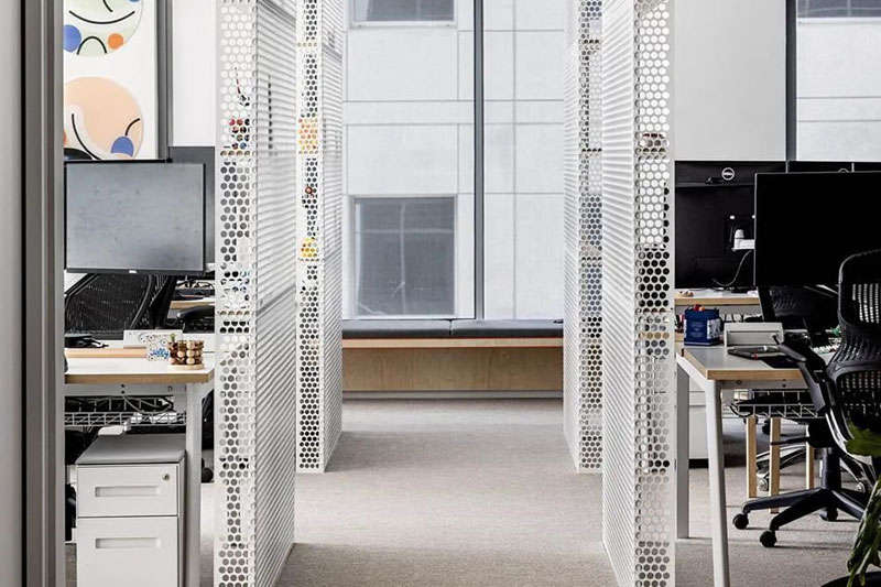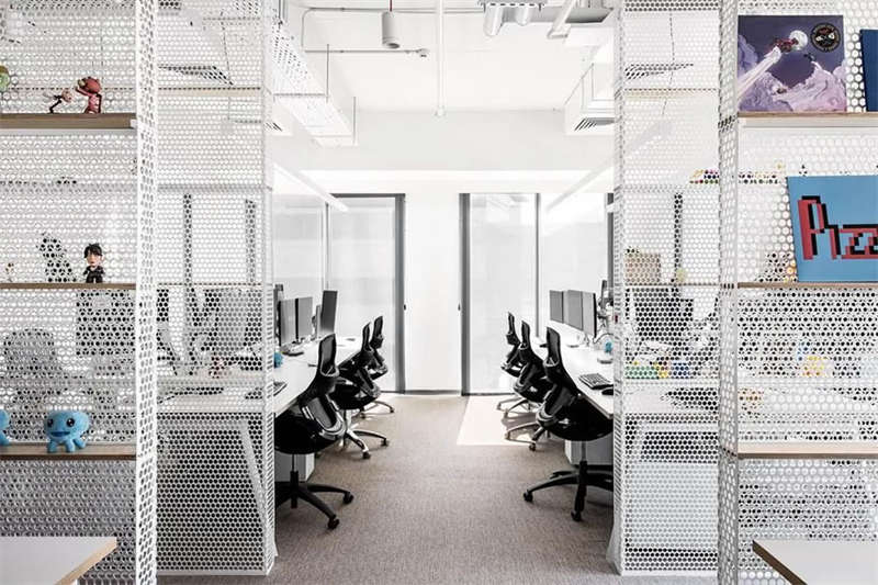 就如同吹出來的肥皂泡泡自由飄散于空中的原理一樣,設計團隊將工作區和各類休閑設施、會議空間、協作空間和專注空間等自由穿插布局,從而形成一個流暢、動感、無縫連接、且充滿趣味的混合形態工作布局。