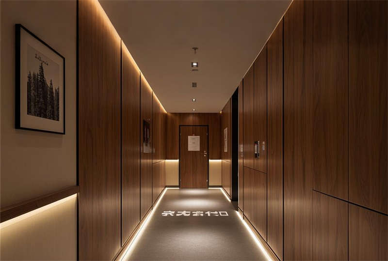 本方案采用現代簡約設計語言,整體空間以淺灰、白、原木三色為主基調。前臺區設置懸浮式接待臺與發光LOGO墻,搭配LED線性照明塑造企業形象。開放式辦公區采用模塊化工位布局,通過玻璃隔斷劃分功能區域,保證自然采光最大化的同時提升空間通透感。智能會議系統集成于各會議室,配備電動投影和書寫玻璃墻。經理室采用深藍色烤漆木飾面提升商務質感,休息區設置咖啡吧與卡座強化員工關懷。走廊運用導視燈帶串聯各區域,茶水間六角地磚增添趣味性。培訓室階梯式布局配合吸音墻面確保聲學效果,電話間磨砂玻璃立方體兼顧隱私與采光。VIP室智能霧化玻璃實現空間靈活轉換,整體設計注重功能分區與人文關懷的平衡。
