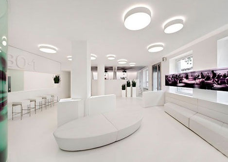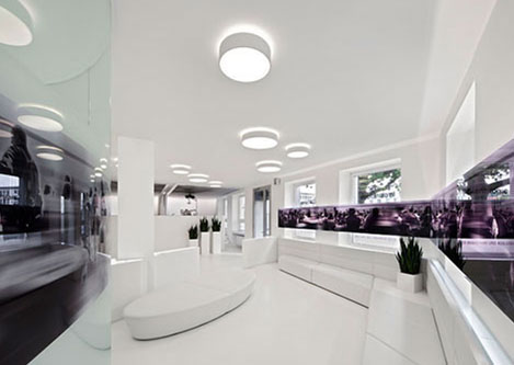 設計理念:牙科診所最終還是歸屬醫(yī)院范疇,給病人治病的。只是牙科診所可以在裝修上比醫(yī)院有更多的想法和創(chuàng)意的設計元素在里面。白色的地磚灰色的座椅使空間設計更嚴謹,傳遞出一種信任感并營造出臨床氛圍。