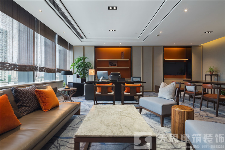 “你站在橋上看風景,看風景的人在樓上看你。明月裝飾了你的窗子,你裝飾了別人的夢。”人與人、人與景之間的交織互動在卞之琳的《斷章》里詩意呈現,也同樣貼合設計師為同進置業公司辦公室定下的設計思路。他的空間設計結合江景地利、都市人文,在實用功能、格調品位之外,借助綠植規劃等巧妙手法,進一步突顯地產公司的職業形象與社會責任,不僅充分納景入室,更樹立起友好對外界面,成為一道嶄新的綠色都市風景。