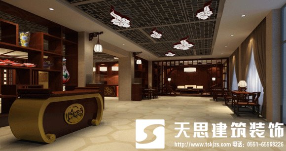 茶樓一般選用局部照明的方式,這種照明方式可以產生虛擬空間,有很強的暗示作用,并且能夠起到良好的視覺效果,增強空間的層次感。