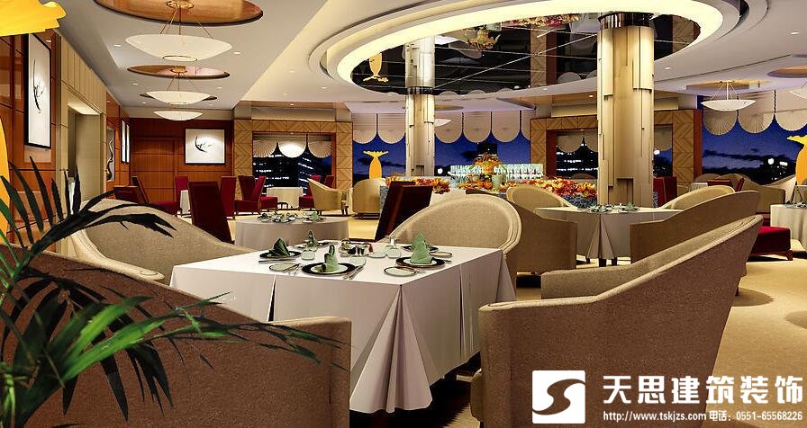 在西餐廳設(shè)計(jì)過(guò)程中,通常吸頂式燈用于天花安裝都緊貼,可增加頂棚亮度,并為餐廳室內(nèi)提供一般照明和局部照明,為直接采光形式的應(yīng)用。由于吸頂式燈緊貼于天花,因此由吸頂式燈組成的圖案可 以構(gòu)成天花的裝飾,裝飾性較強(qiáng)。常見的吸頂式燈具外觀有圓形、方形、三角形、矩形、條形、曲線形等多種幾何形式。燈外透光罩有玻璃、有機(jī)玻璃、硬塑等多種材料制成, 形成全透明、半透明、磨砂罩等幾種燈具形式。