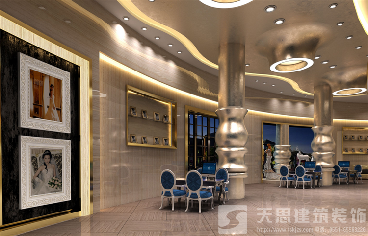 在進行婚紗影樓裝修設計的時候,還有一個是非常重要的,那就是內部結構,我們摘掉,婚紗影樓需要的內部空間非常的大,要有客戶接待區,要有客戶選片區,要有客戶選衣服區,要有數碼室,要有內景拍攝區等等,所以每一個功能區的用途不同,設計的風格自然也是不一樣,要針對不同的空間,合理的設計。