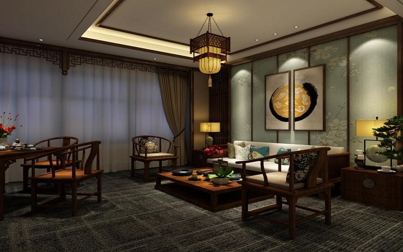 設(shè)計(jì)師在裝修設(shè)計(jì)充分考慮了中式元素的性質(zhì)和特點(diǎn),使其既滿足其功能和經(jīng)營特點(diǎn)需求,又兼顧現(xiàn)代技術(shù)要求及中式風(fēng)格.因此在空間的功能、色彩、光影、材料、配飾、綠化等方面都在變化中尋求完美的統(tǒng)一,讓合理的空間格局給人們以美的感受.