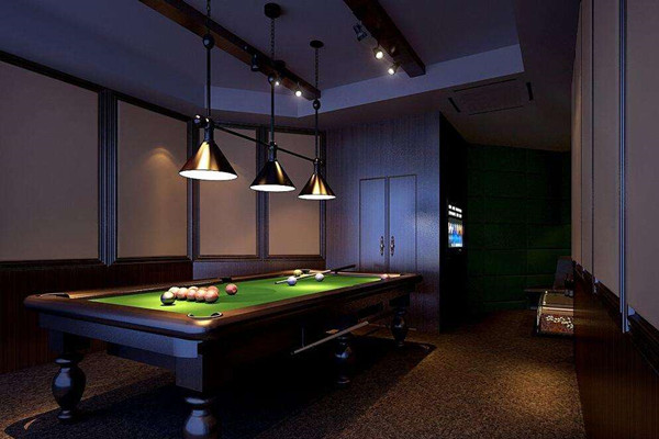 3、墻面:不適合用太過明亮的顏色粉刷,也不能太過昏暗,注重合理搭配球房的整體氛圍。如若要選用窗簾,最好用顏色較淺的顏色,不會太過刺眼。