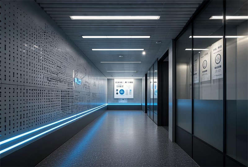 本 5000 平現代輕奢辦公室設計采用淺灰、暖白、深藍三主色系,融合金屬與玻璃材質凸顯科技感。空間規劃注重功能分區與動線流暢,前廳大氣 LOGO 墻奠定企業形象,開放式辦公區采用模塊化組合提升協作效率。智能會議室配備先進影音系統,總經理室通過材質搭配彰顯商務氣質。休息區綠植墻與霧化系統營造舒適環境,走廊導視燈帶增強空間導向性。獨立辦公室采用電動霧化玻璃兼顧隱私與通透,培訓室靈活隔斷滿足多種使用需求。茶水間設備齊全提升員工幸福感,電話間吸音處理保障溝通質量。整體設計在嚴謹辦公氛圍中融入人文關懷,通過燈光層次與材質對比打造現代高效的辦公空間。