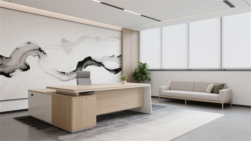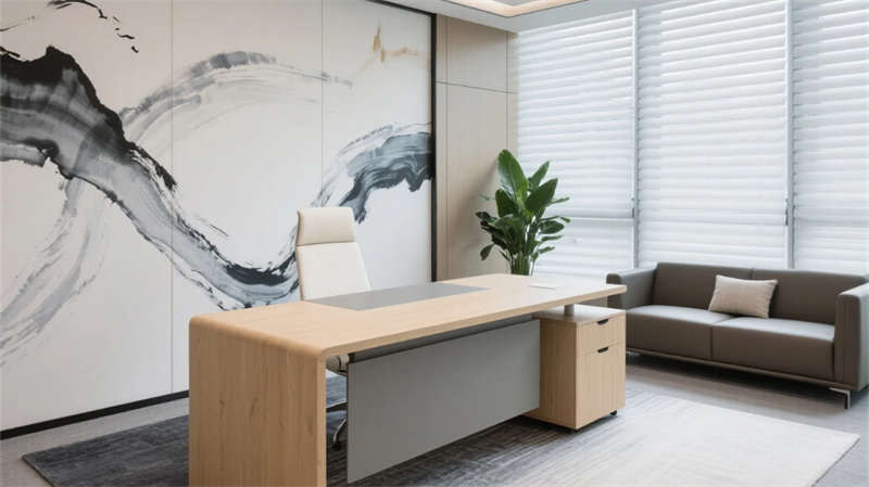 該設計以現代簡約語言重構辦公空間秩序,通過光影與材質的精妙平衡,營造滁州商務美學的當代樣本。空間以淺木、暖灰與啞光白為主調,線性光帶貫穿各區域,形成視覺連續性。開放辦公區借落地窗引入瑯琊山景光影,百葉簾調節自然與人工光的韻律;協作區弧形沙發與綠植墻柔化幾何理性,激發團隊創造力。