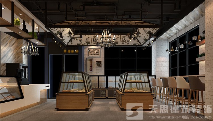 設(shè)計風(fēng)格以復(fù)古的文化氣息結(jié)合現(xiàn)代的審美要求創(chuàng)造出一種具有歐洲古堡韻味、時尚個性、極具創(chuàng)意感以適應(yīng)不同人群的需求及審美的設(shè)計。空間頂部設(shè)計采用裸頂噴灰漆局部吊頂?shù)氖址ǎ怀鲋攸c區(qū)域,節(jié)省成本。墻面采用水泥漆、文化磚等,地面采用水泥地坪漆,整個空間采用灰色調(diào)突出展柜的木紋顏色,進而突顯產(chǎn)品,使整個空間顯得高大上。店內(nèi)以灰色調(diào)為主,采用藍(lán)綠色作為點綴,使得屋外與屋內(nèi)得到了很好的延續(xù)。