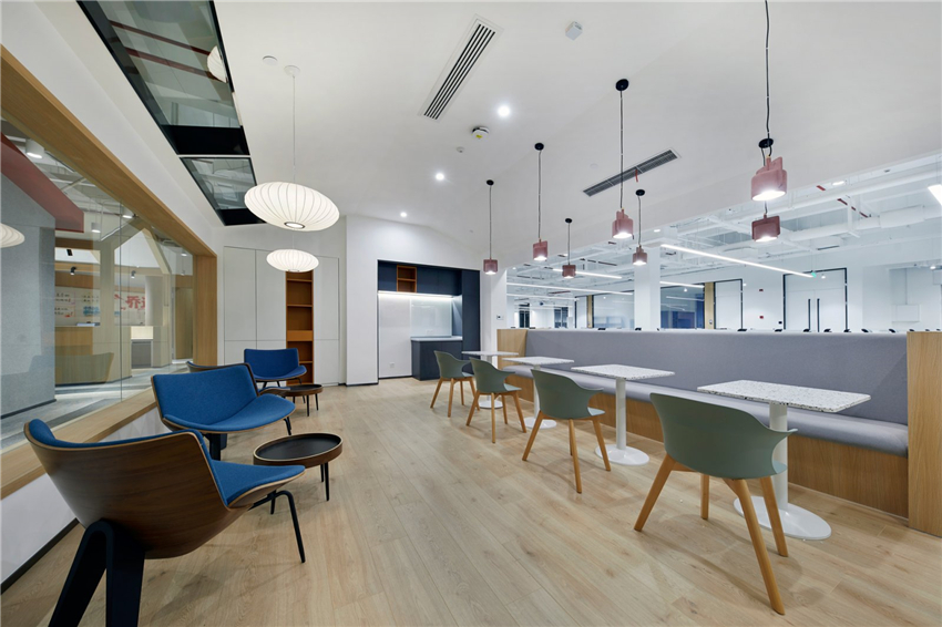 整個辦公區域共設置了5間會議室,其中1間中心會議室和分部在四角的小會議室。空間布局上呼應了故宮建筑群的思想理念,便于周圍的員工可在短時間內快速聚集參加會議,另外,充足的會議室可省去“搶占”會議室的煩惱。