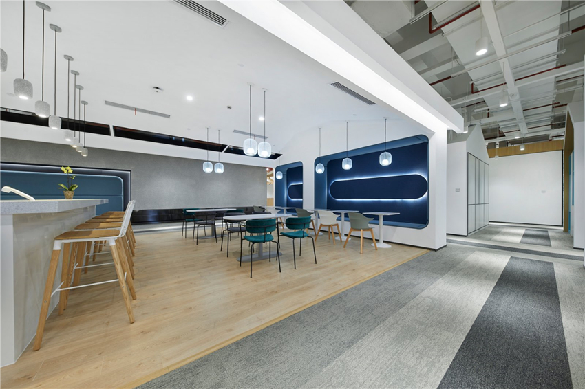 放射狀燈帶延續至空間四周極具視覺沖擊力,動靜結合、張弛有度,傳達著空間的動感和大氣。也強烈釋放著研發企業自信的特質。