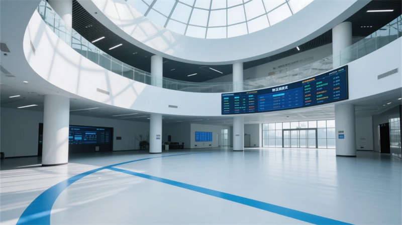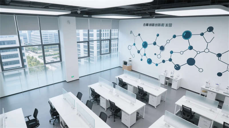 物流中庭的挑空設計打破廠房尺度壓迫感,懸掛式數據看板如抽象藝術品,與玻璃穹頂投下的天光共構科技禪意。研發區可移動實驗裝置墻體現柔性生產理念,分子結構藝術墻繪暗喻制造背后的科學探索。