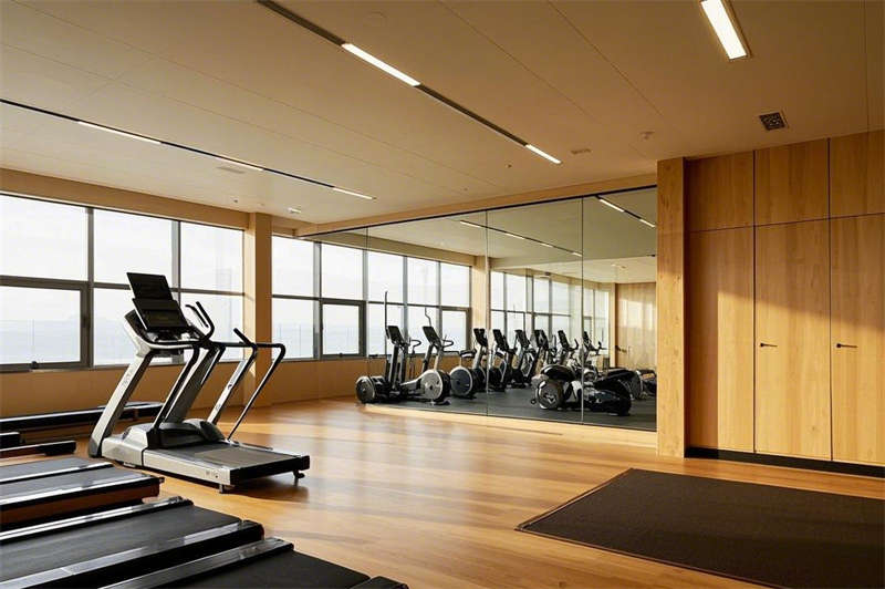 健身房內(nèi),落地鏡墻面與木質(zhì)地板打造出寬敞明亮的運(yùn)動空間,有氧器械區(qū)、力量訓(xùn)練區(qū)與瑜伽區(qū)一應(yīng)俱全,讓您在旅途中也能保持健康活力。