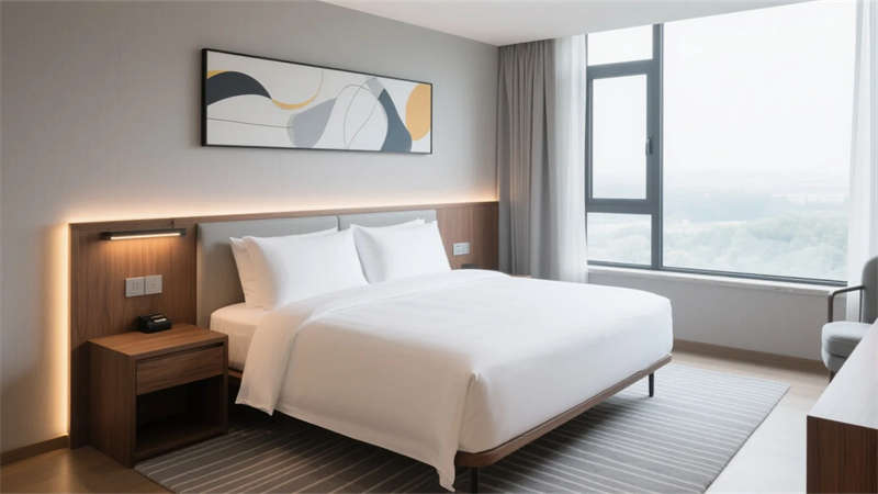 藝術品陳列成為空間的精神錨點。大堂抽象金屬裝置隱喻合肥科技創新基因,客房手作陶器呼應本地文化脈絡,電梯廳的石材拼畫以當代語言解構傳統山水意境。這些藝術介入并非孤立裝飾,而是與建筑結構、功能流線深度交融。