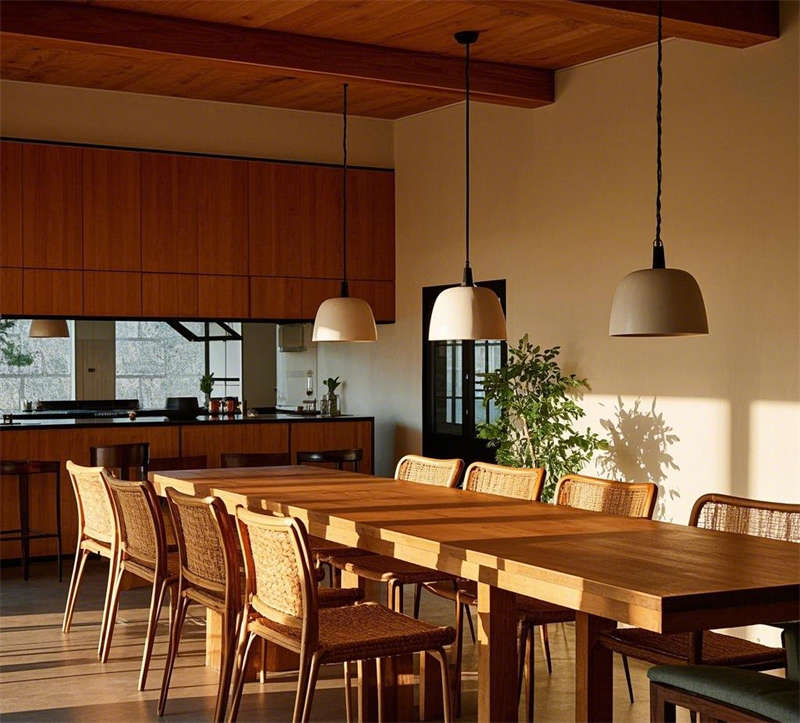這套1000平民宿設計以自然簡約風格為核心,營造出溫暖舒適、貼近自然的居住體驗。整體空間以原木色調為主,搭配米白色、淺灰等柔和色彩,輔以綠植點綴,呈現(xiàn)出清新自然的氛圍。大堂以原木色前臺和藤編吊燈為亮點,搭配落地窗引入充足光線,營造出溫馨的迎賓空間。客廳采用開放式布局,原木地板與編織地毯相得益彰,搭配圓形茶幾和落地燈,打造出輕松愜意的休閑區(qū)域。餐廳延續(xù)自然風格,長桌與藤編餐椅的組合簡潔大方,開放式廚房與吧臺的設計增強了空間的互動性。臥室分為兩種風格,一種以藤編床頭和棉麻床品為主,營造出舒適的睡眠環(huán)境;另一種采用日式榻榻米設計,搭配推拉門和竹林景觀,傳遞出寧靜禪意的氛圍。浴室同樣注重自然元素的運用,圓形浴缸與綠植的結合讓人仿佛置身于自然之中,而日式風格的浴室則通過竹制裝飾和庭院景觀,進一步強化了寧靜放松的體驗。戶外庭院以石板小路和木質平臺為主,搭配休閑桌椅和綠植環(huán)繞,為客人提供了一個親近自然的戶外休閑空間。整體設計注重材質與光影的運用,將自然元素與現(xiàn)代簡約風格完美融合,打造出一個舒適、放松的民宿空間。