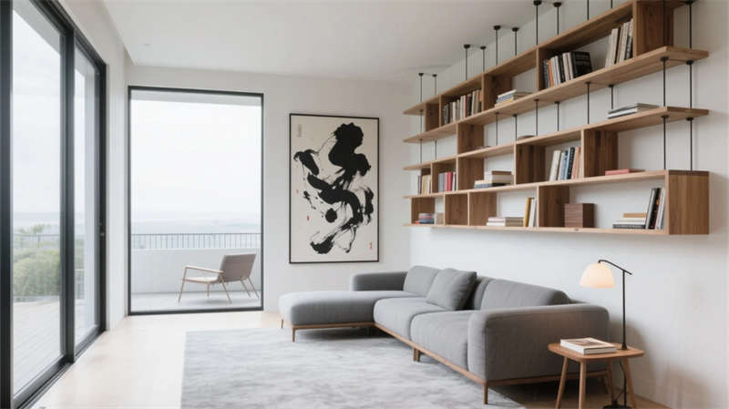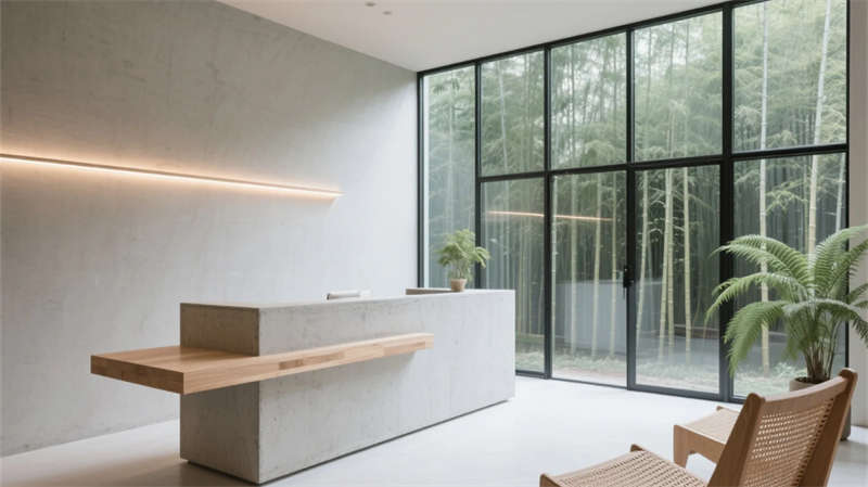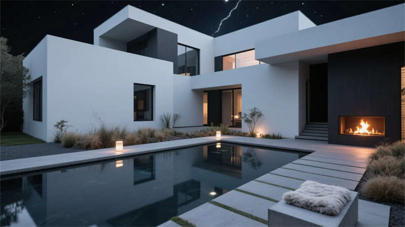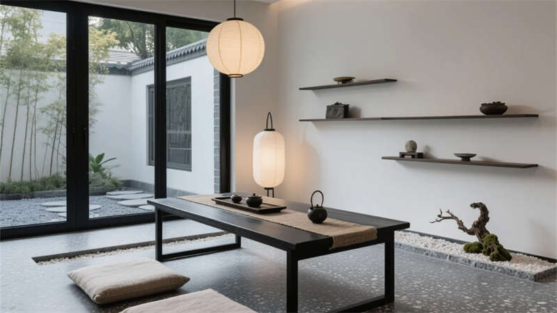 庭院成為生態樞紐,幾何水景倒映建筑體塊,耐旱植物與灰石板構成低維護景觀。多功能廳通過靈活隔斷適應共享需求,藝術品陳列架隨動線旋轉生趣。整體摒棄繁復裝飾,用材質本真觸感、光影時間軌跡與城市山水意境,營造大隱于市的當代棲居范本。