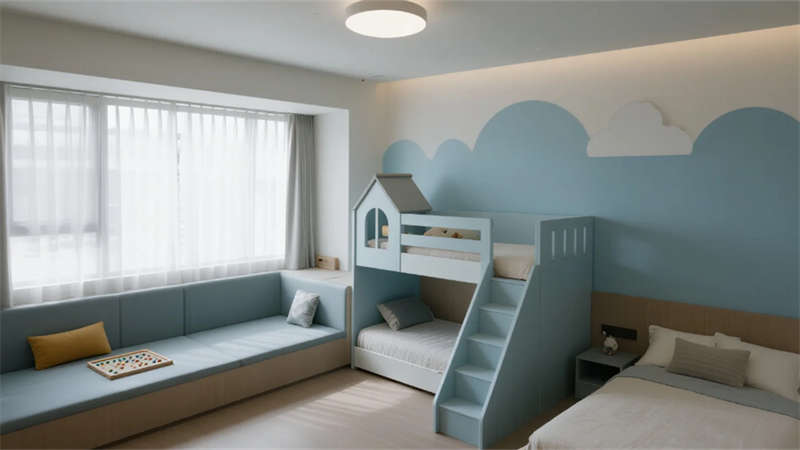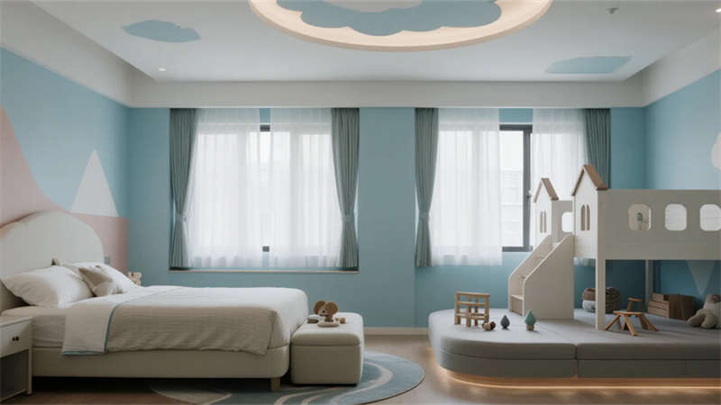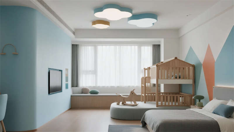 公共區域強調功能與美學的平衡:開放式游樂區釋放孩子天性,閱讀角的樹洞書架激發想象力,手工坊的彩虹收納系統培養創造力。戶外庭院融入沙坑與綠植,讓自然成為游戲場;夜晚的星空影音室則轉為家庭溫馨劇場。整體設計通過流動的空間布局,讓家長與孩子在簡約美學中共享親密時光,重新定義合肥親子度假的體驗方式。