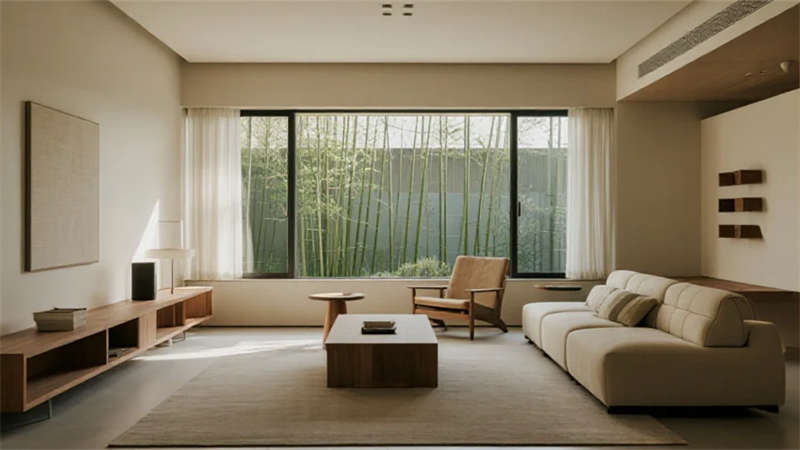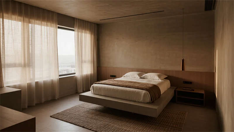 該設計以現代簡約語言重構居住本質,將自然光影作為空間敘事的主角。建筑外觀采用純凈的幾何體塊組合,原木格柵與純白墻面對話,形成克制而溫暖的初印象。室內摒棄冗余裝飾,通過微水泥的質樸肌理、實木的溫潤觸感以及亞麻織物的呼吸感,構建出具有生命力的簡約美學。