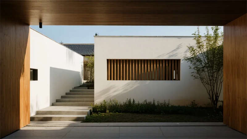 庭院設計延續侘寂美學,枯山水汀步引導冥想心境,混凝土坐臺與苔蘚造景在光影推移間展現時間痕跡。茶室榻榻米區借可移動格柵調控光線,營造虛實相生的東方意境。整個項目以材質本真、光影律動和空間呼吸感,在城市中筑就一方詩意棲居。