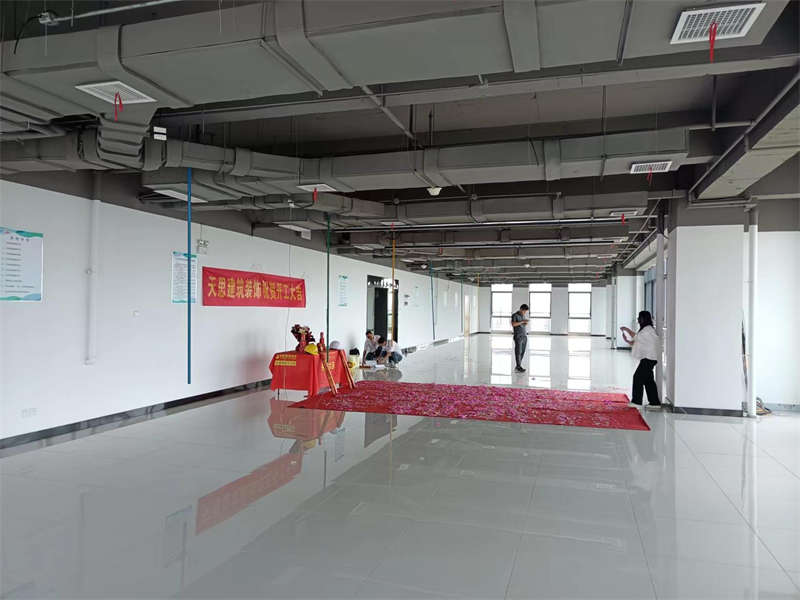 由天思裝飾承接的安徽智寰科技有限公司1000平辦公樓裝修開工啦!感謝業主對天思裝飾的信任,我們將竭誠為您服務,必不辜負業主的信任,呈現最終完美項目。我公司已經安排工人進場,現場施工條幅已經拉起。接下來的施工正按計劃有步驟地進行。