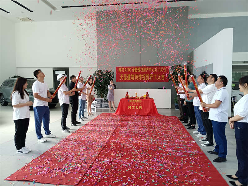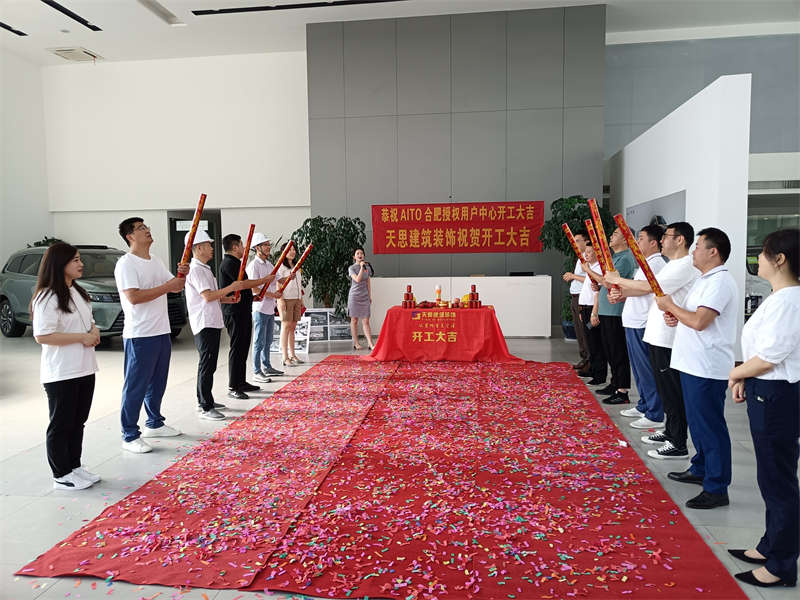 2022年8月5日,我們又迎來了新項目的開工,在這里安徽天思裝飾全體員工恭賀AITO合肥授權用戶體驗中心裝修工程開工大吉!開工儀式于項目現場隆重舉行。現場禮花飛舞,開工錘聲音響徹工地每一個角落,讓我們再一次恭祝AITO合肥授權用戶體驗中心開工大吉!