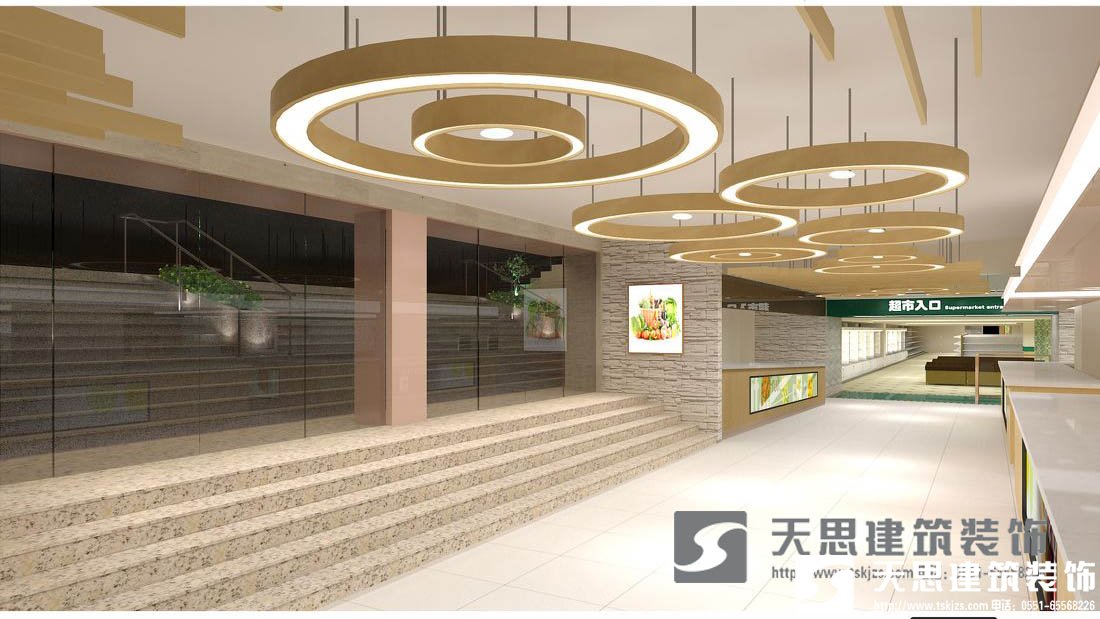 超市入口設計一定要便于顧客出入,不致造成阻塞、擁擠,又能有效地利用商店面積。出入口設計原則是超市門面裝修設計原則的首要點(重點)。