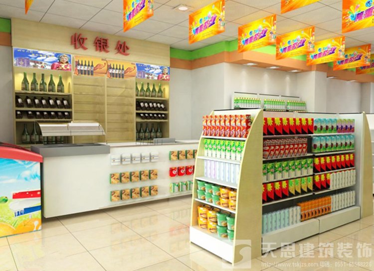 便利店的裝潢效果應該最有效地突出商品的特色。裝潢不宜采用豐富、鮮艷的色彩,不要讓裝潢的色調來分散顧客對商品的視覺注意力,最好是天、地、墻都采用反光性、襯托性強的純