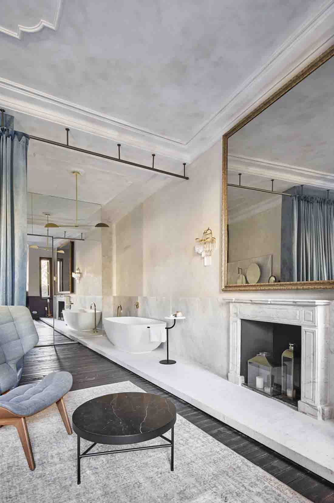 設(shè)計(jì)師旨在喚起比酒店更多的參觀房屋的經(jīng)歷。因此,客戶不是在酒店接待處而是在房子的門廳見面;找到的餐廳而不是餐廳,而是找到了居民用餐室,這些房間和客廳就像您在老房子中找到的那樣。該項(xiàng)目精心保留了建筑物中浪漫的氛圍,并與不同時(shí)期的干預(yù)和元素進(jìn)行了有意識(shí)的對(duì)比。這是對(duì)現(xiàn)有百年建筑雜交的尊重,它保留了過去的痕跡,并避免了房屋從未擁有過的輝煌過去的錯(cuò)誤恢復(fù)。