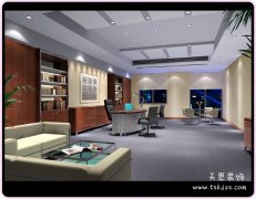 總經理、副經理辦公室,分別設計配置有經理室辦公區、接待室、休息室、衛生間功能。經理室主要是突出穩重、明快、大方、簡潔、有文化氣息。地面主要鋪舒心的淺灰藍色的地毯,