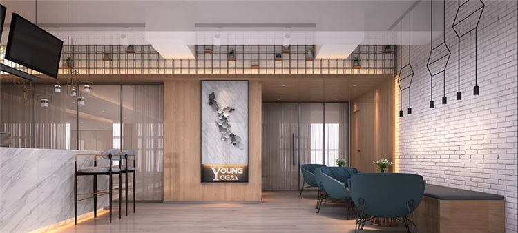本次設計師在打造瑜伽館內部特色時,以活力、時尚為主要設計理念,在瑜伽館大廳,設計師選用天然磚石來打造背景墻,進行全面刷白,結合天然木材打造的墻面和實木地板,再取黑色裝飾品進行點綴,使整個大廳都充滿的時尚感,而在瑜伽室,設計師則以開闊和簡潔為主,以灰色為主要色系,搭配著實木地板,不添加任何的家具,使整個空間開闊的同時,將瑜伽館的活力感盡數展現出來!