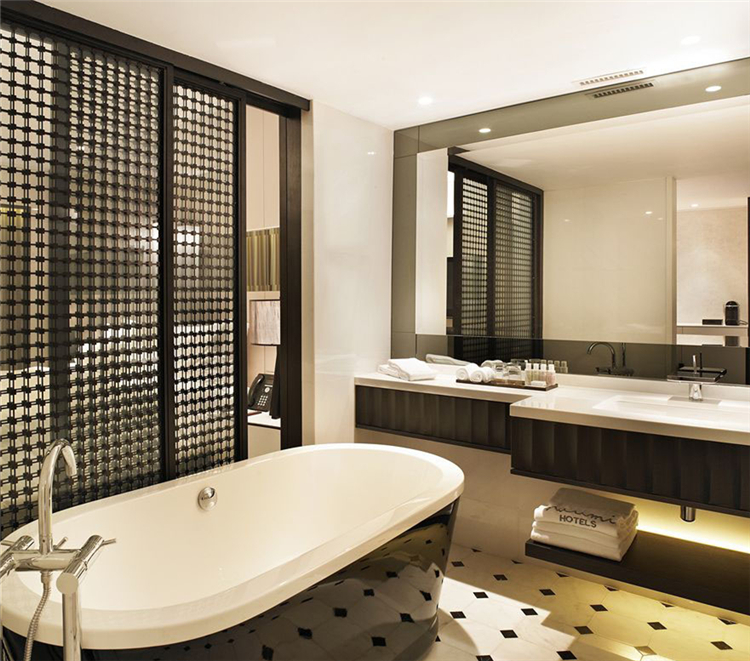 極簡主義風格并沒有妨礙設計師為酒店創造豐富的主題元素,以花草、猴子、孔雀、青蛙等為主題的森林圖案,遍布鏡面、墻壁等區域,營造了精致的“城市森林”效果。