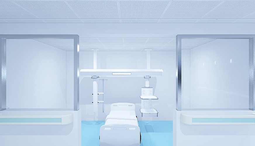 在本案中,設(shè)計(jì)師一改醫(yī)院的常規(guī)風(fēng)格,大膽使用了藍(lán)色為基調(diào).藍(lán)色向來代表著冷靜、睿智,也能起到平復(fù)人們情緒的暗示作用,這次使用在醫(yī)院中,更充滿了科技感.為與醫(yī)院定位相匹配,室內(nèi)并無多余的裝飾品,干凈、清爽是本次設(shè)計(jì)的最大特點(diǎn).同時(shí),設(shè)計(jì)師也非常注重空間細(xì)節(jié)的營(yíng)造,如醫(yī)院的導(dǎo)視,就從病人的角度考慮,清晰顯眼,指向明確.