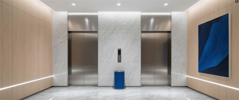前臺大廳:淺木色LOGO墻與大理石接待臺奠定簡約基調,線性燈光延伸視覺縱深;