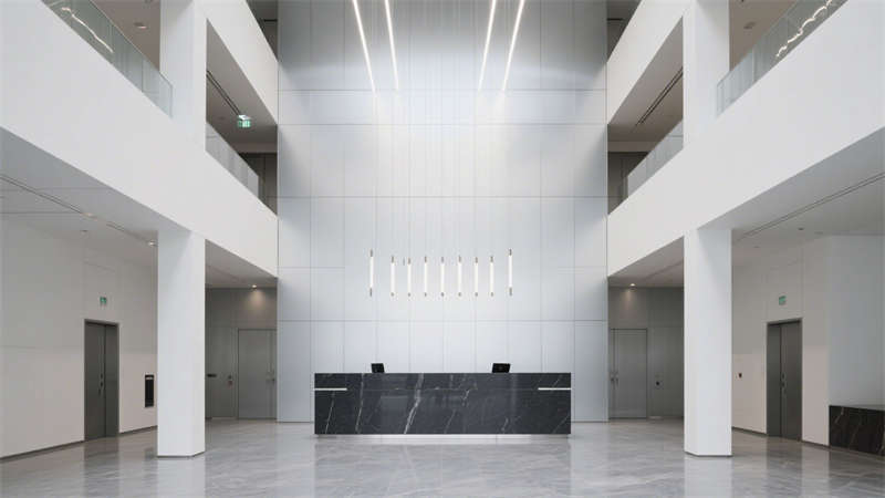 本設計圍繞現代簡約風格展開,從室外到室內形成統一的視覺體系。室外效果圖呈現出簡潔大氣的建筑外觀,線條流暢利落,色彩搭配沉穩雅致,既符合辦公場所的專業氣質,又能在周邊環境中展現獨特辨識度。?